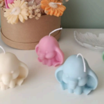 With its rounded features, tiny trunk, and gentle pastel tones, this candle creates a soothing and playful aesthetic. Most designs are handcrafted using eco-friendly soy wax, ensuring a clean, safe, and long-lasting burn.