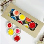 Our Flower Tealight Candles feature delicate floral designs, adding a charming touch and gentle glow to any space. Perfect for décor accents, centerpieces, or cozy corners.